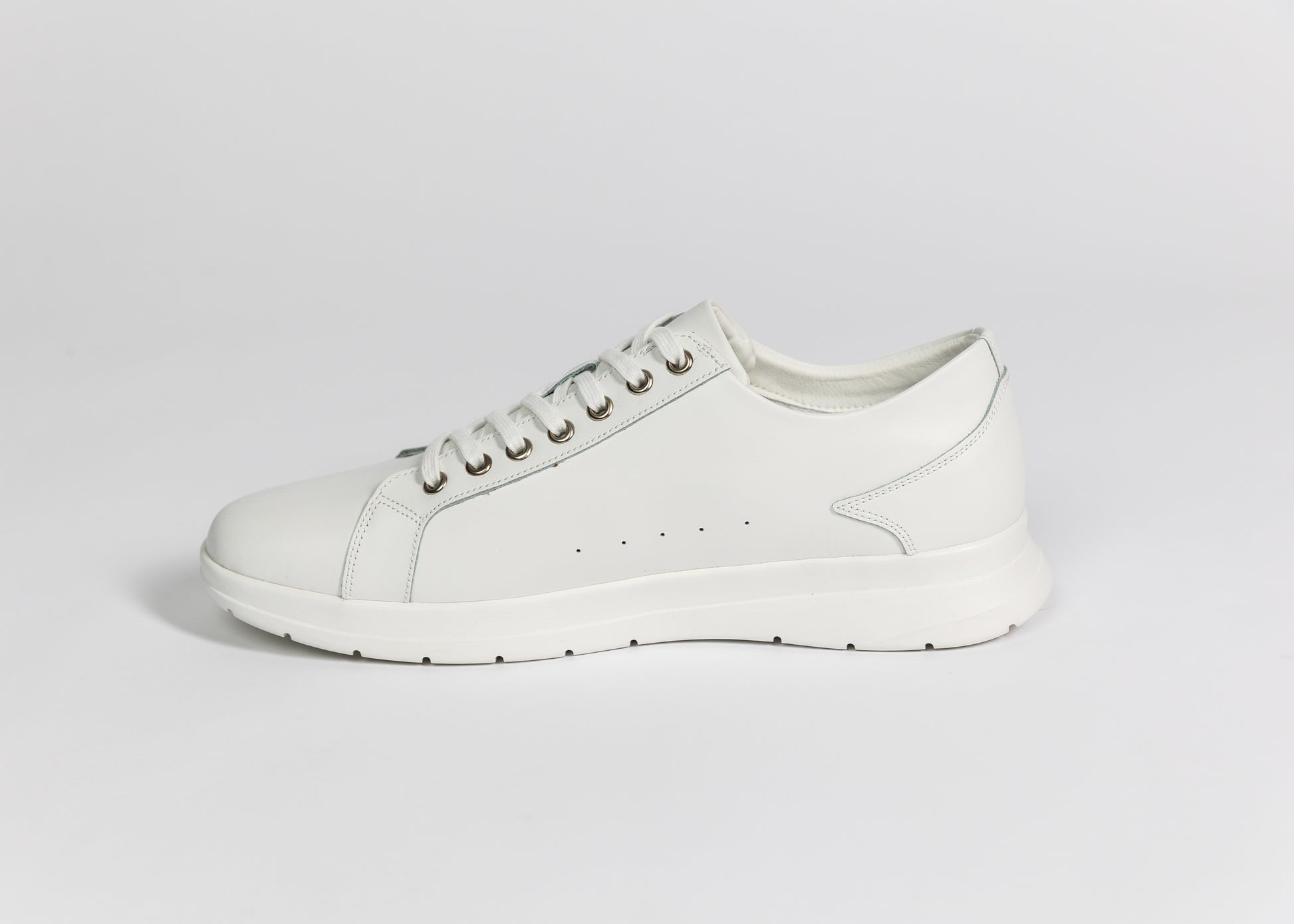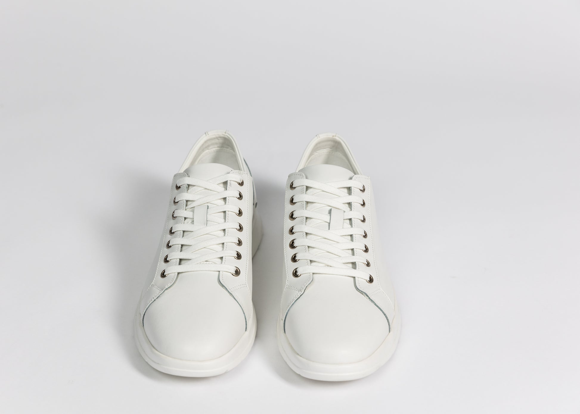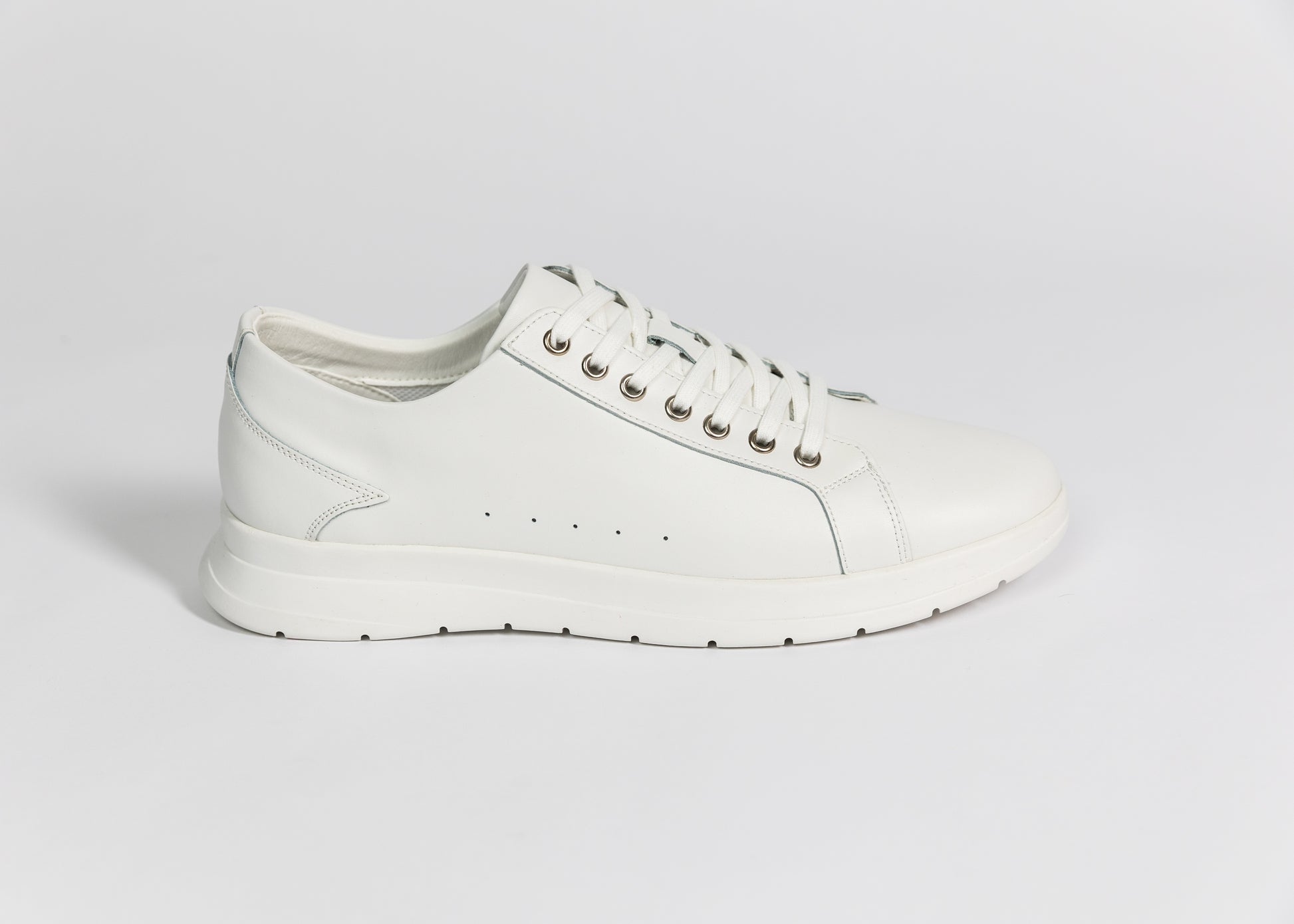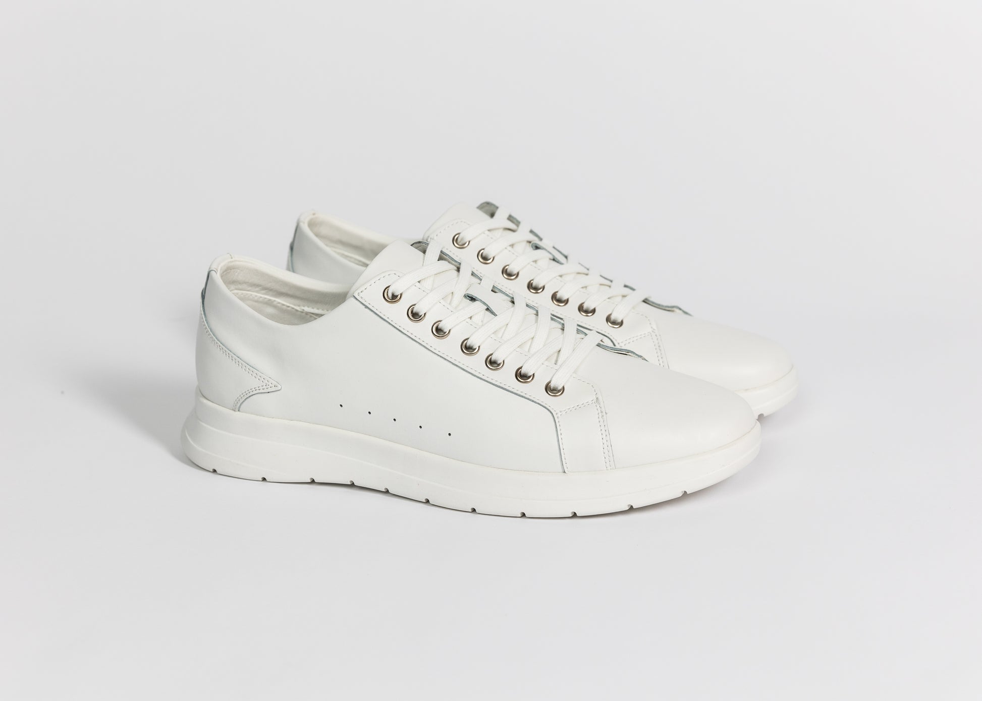 Low Top Leather Sneaker; Finally a low top, lace-to-toe white sneaker that is athletically shaped with a strong sport sneaker outsole. No more low profile, skater bottom, or preppy white sneakers. Crafted with full and top grain leathers for durability and the easy ability to wipe clean after a night out.